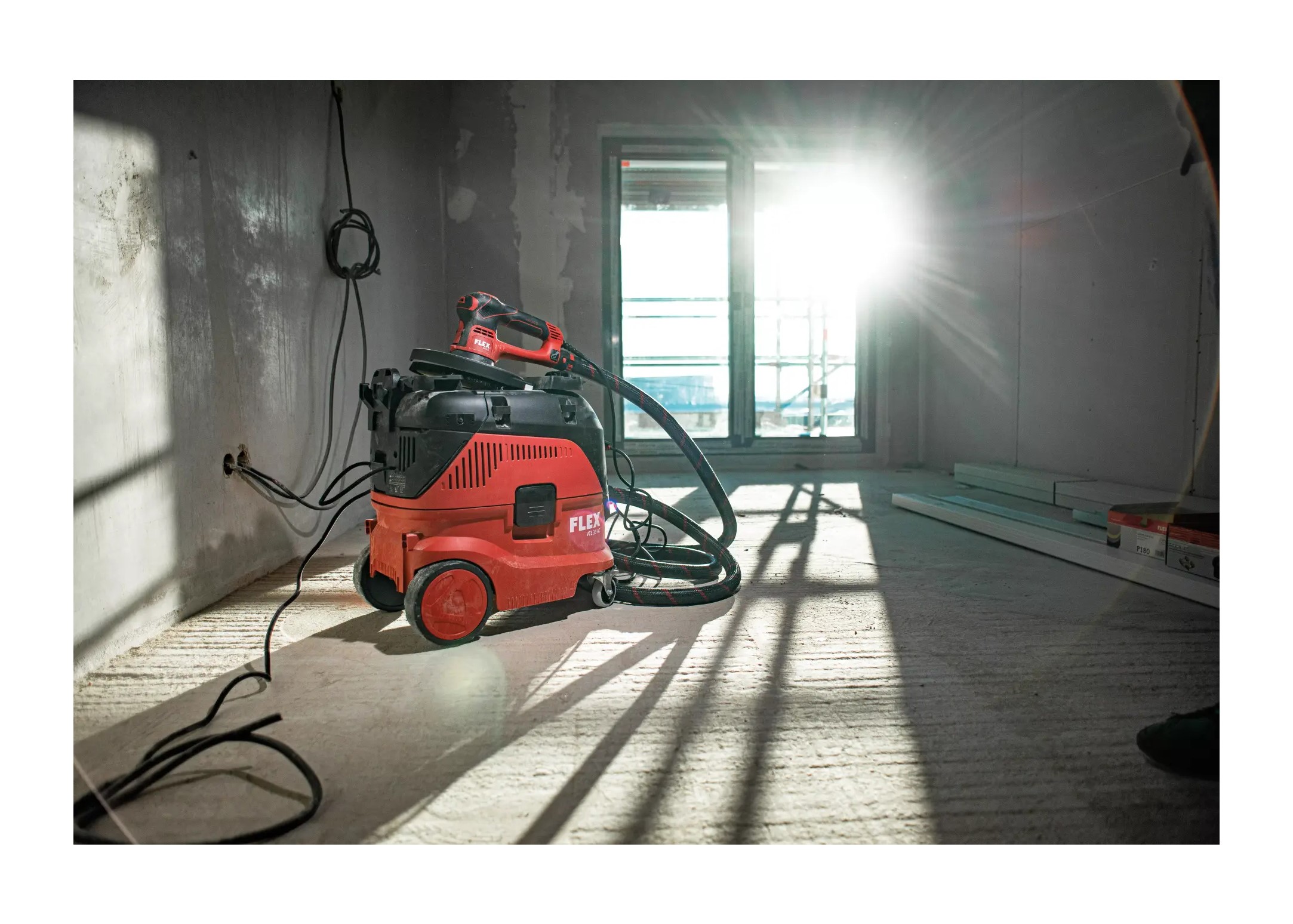 Conducción de la manguera definida y aspiración efectiva, gracias a una gran sección transversal de la aspiración. La manguera de aspiración se conecta directamente con el sistema de clips FLEX en la máquina.