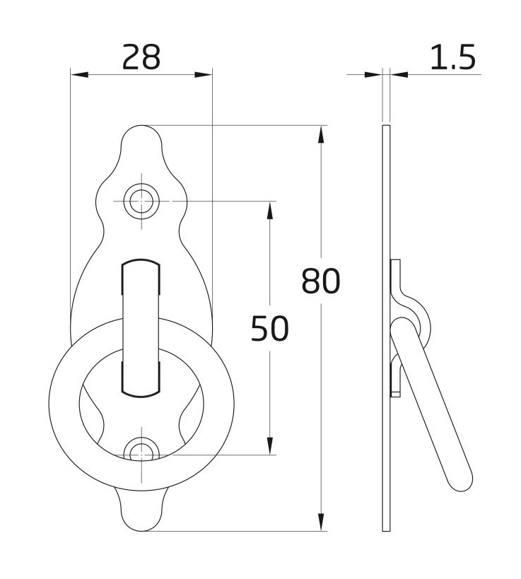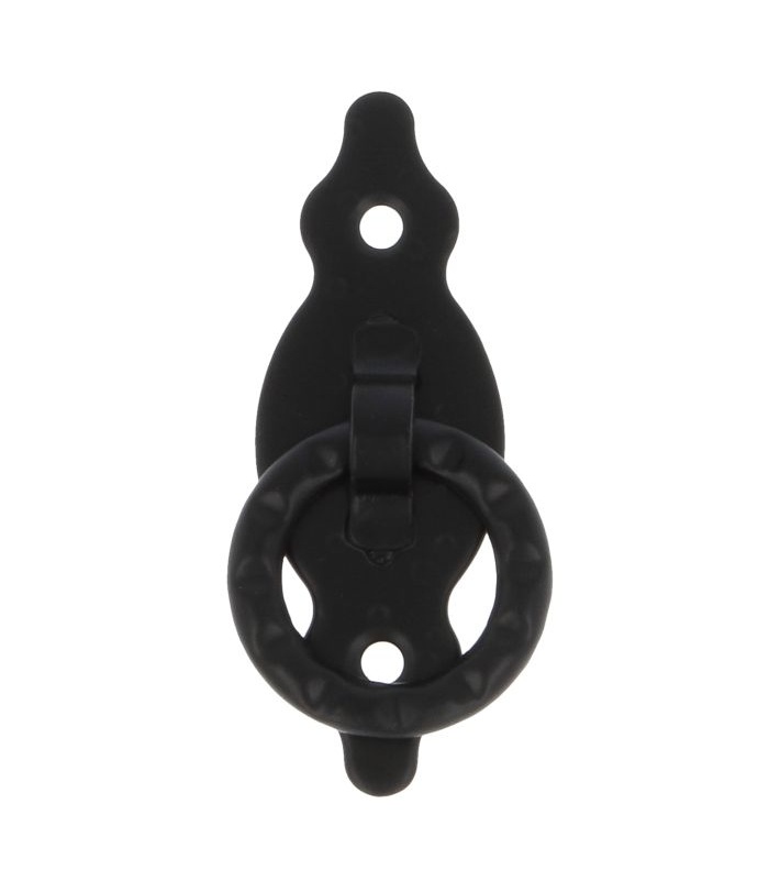 Tirador vertical con anilla y placa punteada, fabricado en acero de alta calidad, robusto y funcional, y con acabado en negro.