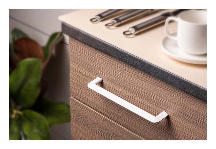 Asa tirador fabricado en zamak, color blanco mate. Medidas: 180 mm. Medidas entre tornillos: 160 mm Ref.: 7-7020.160.17