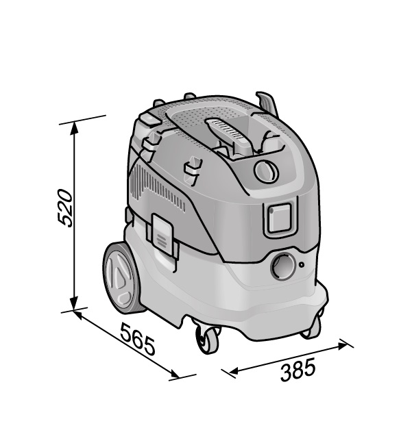 Con expansor para fijación de cajas de máquina y herramientas sobre el cabezal de la aspiradora. Con soporte para manguera y expansor para fijar el cable de corriente de forma rápida y sencilla. Con 4 arandelas de sujeción (2 a cada lado) para colocar correas de sujeción y soporte de jirafa. Apropiado para exigencias mayores en caso de uso profesional. Óptimo para tareas de limpieza en oficinas, ambientes de depósito, talleres y vehículos. En caso de su uso para la aspiración en combinación con máquinas herramienta, su aplicación se centra en herramientas eléctricas menores, como p. ej. lijadoras oscilantes, delta o excéntricas; sierras de calar, … Herramientas que generan cantidades de polvo pequeñas.