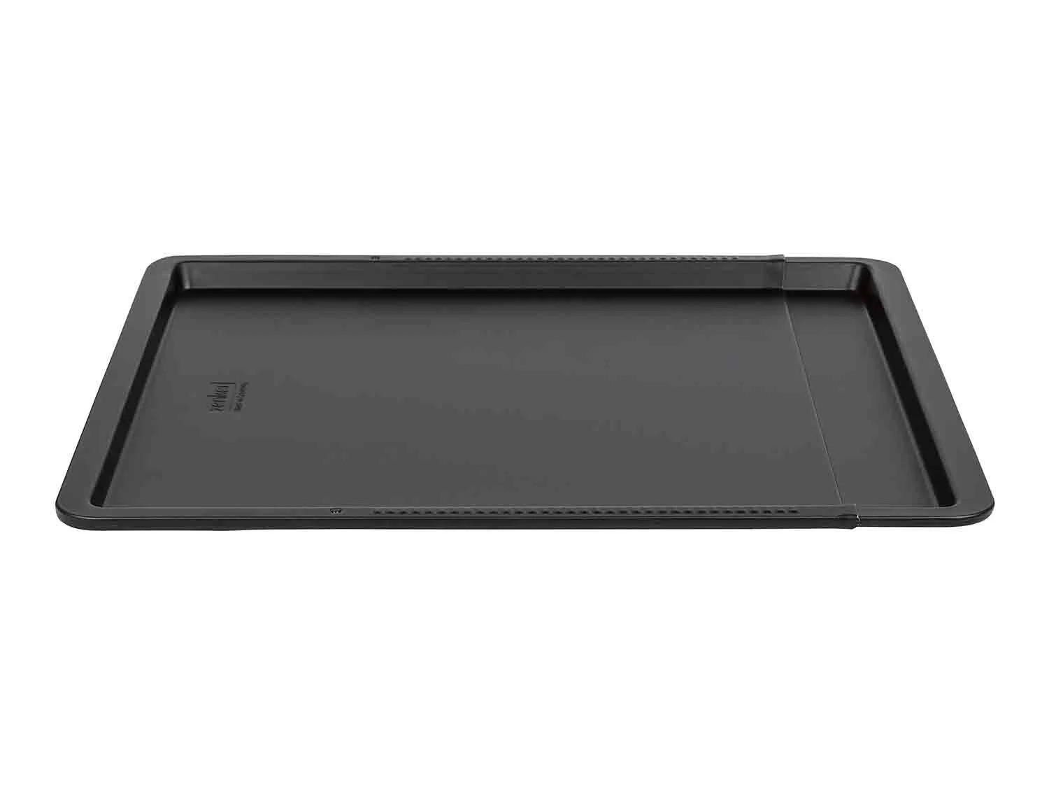 Esta bandeja, además de ser extensible en anchura y adaptable a cualquier horno, es totalmente antiadherente, gruesa y resistente, un accesorio indispensable en la cocina. Si es necesario, puede usarlo para crear un estante en el horno, de hecho, al ser ajustable, la sartén encaja perfectamente en las guías del horno. Cuando lo guardes, puedes plegarlo para ahorrar espacio.