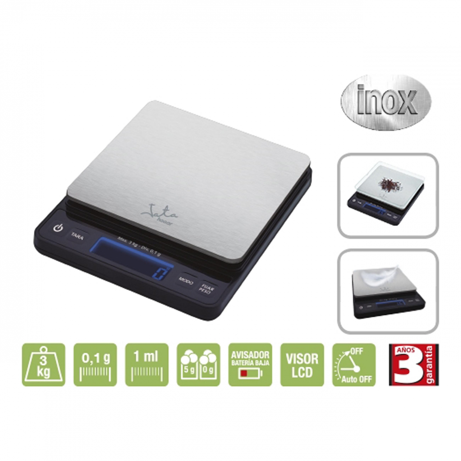 BASCULA ALTA PRECISION INOX-NEGRO 3KG JATA