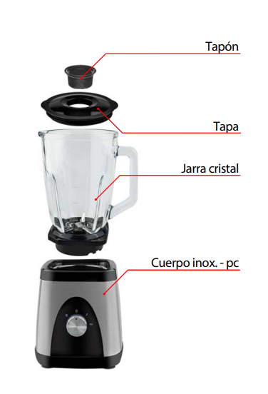 - Vaso extraíble de 1,5 litros, de cristal resistente con asa.