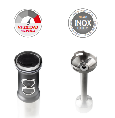 2 velocidades: Velocidad 1 regulable / Velocidad 2 Turbo.