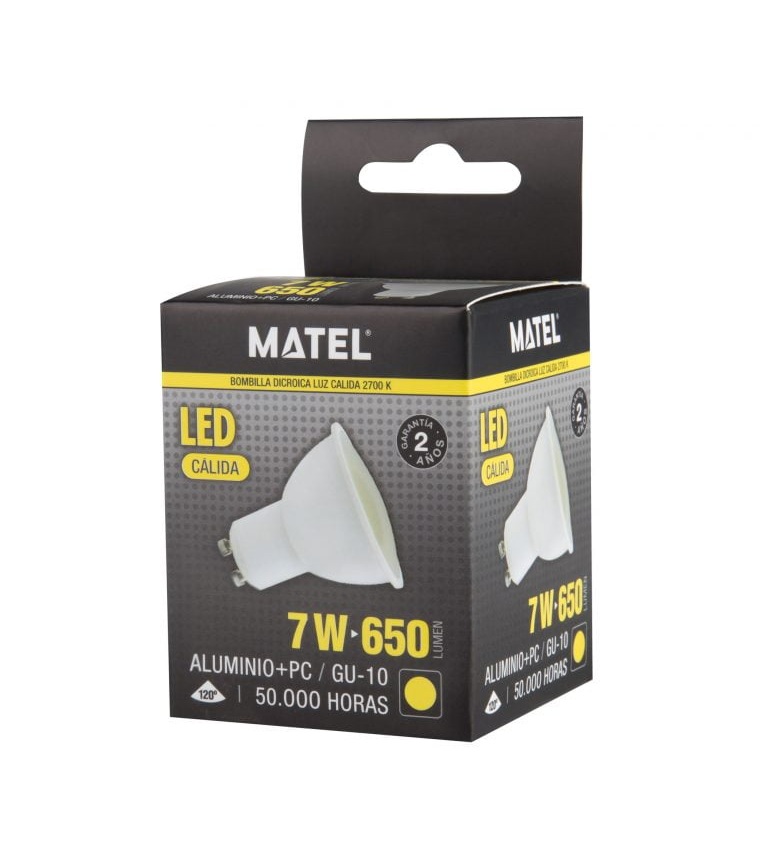 BOMBILLA LED DICROICA GU10 7W CALIDA MATEL