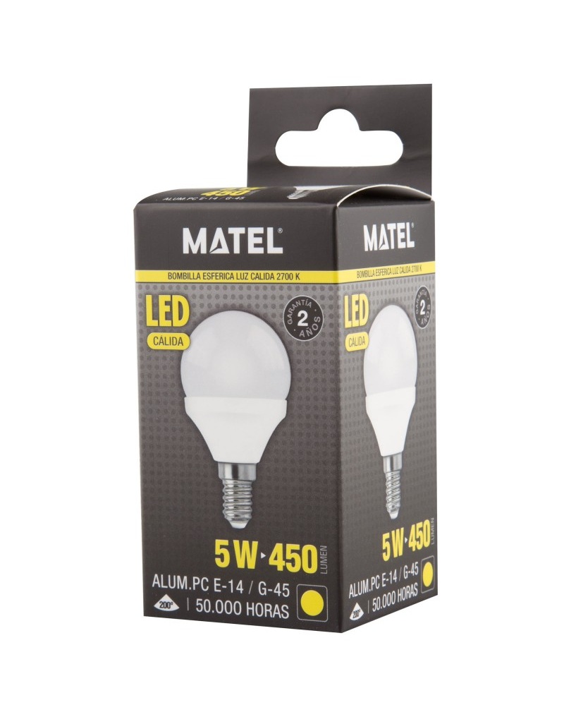 BOMBILLA LED ESFERICA E14 5W CALIDA MATEL