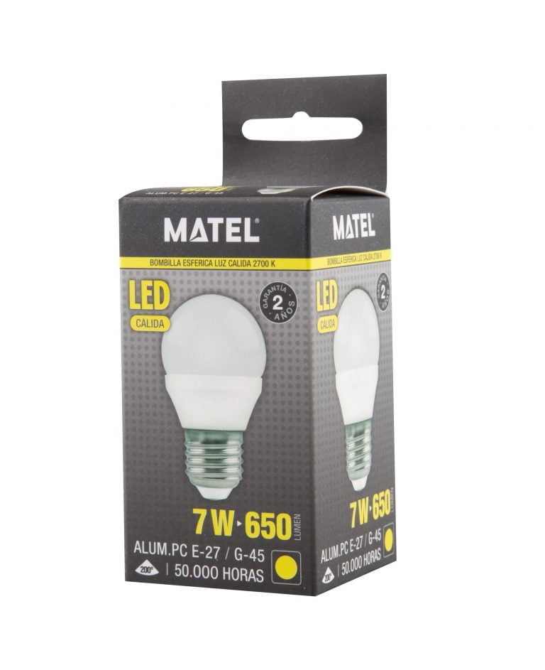 BOMBILLA LED ESFERICA E27 7W CALIDA MATEL