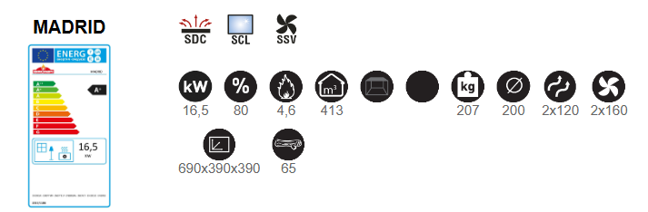 MADRID INSERTABLE DE LEÑA 90 CM 16,5 KW BRONPI
