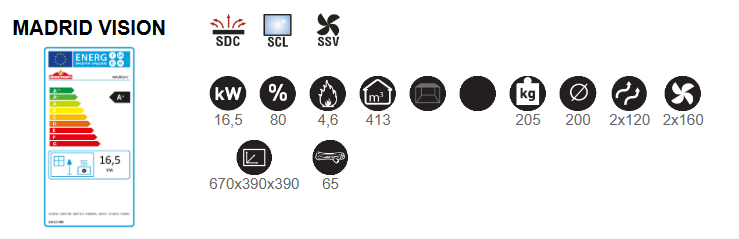 MADRID INSERTABLE DE LEÑA VISION 90 CM 16,5KW BRONPI