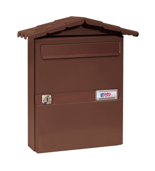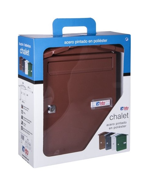 iva incl.Buzón para exterior fabricado en acero galvanizado, modelo Chalet, acabado en color marrón tierra.