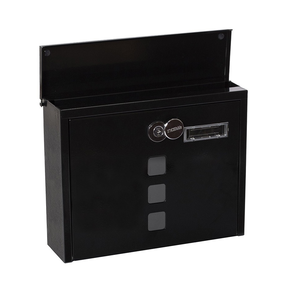 iva incl.Chance es un buzón individual exterior, de tamaño mediano (DIN A4), fabricado acero galvanizado, acabado en color negro.