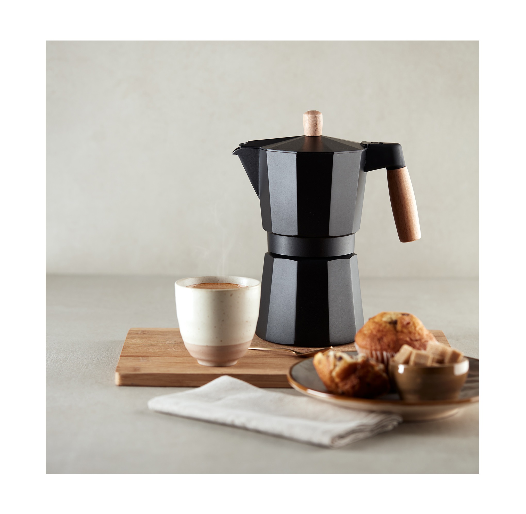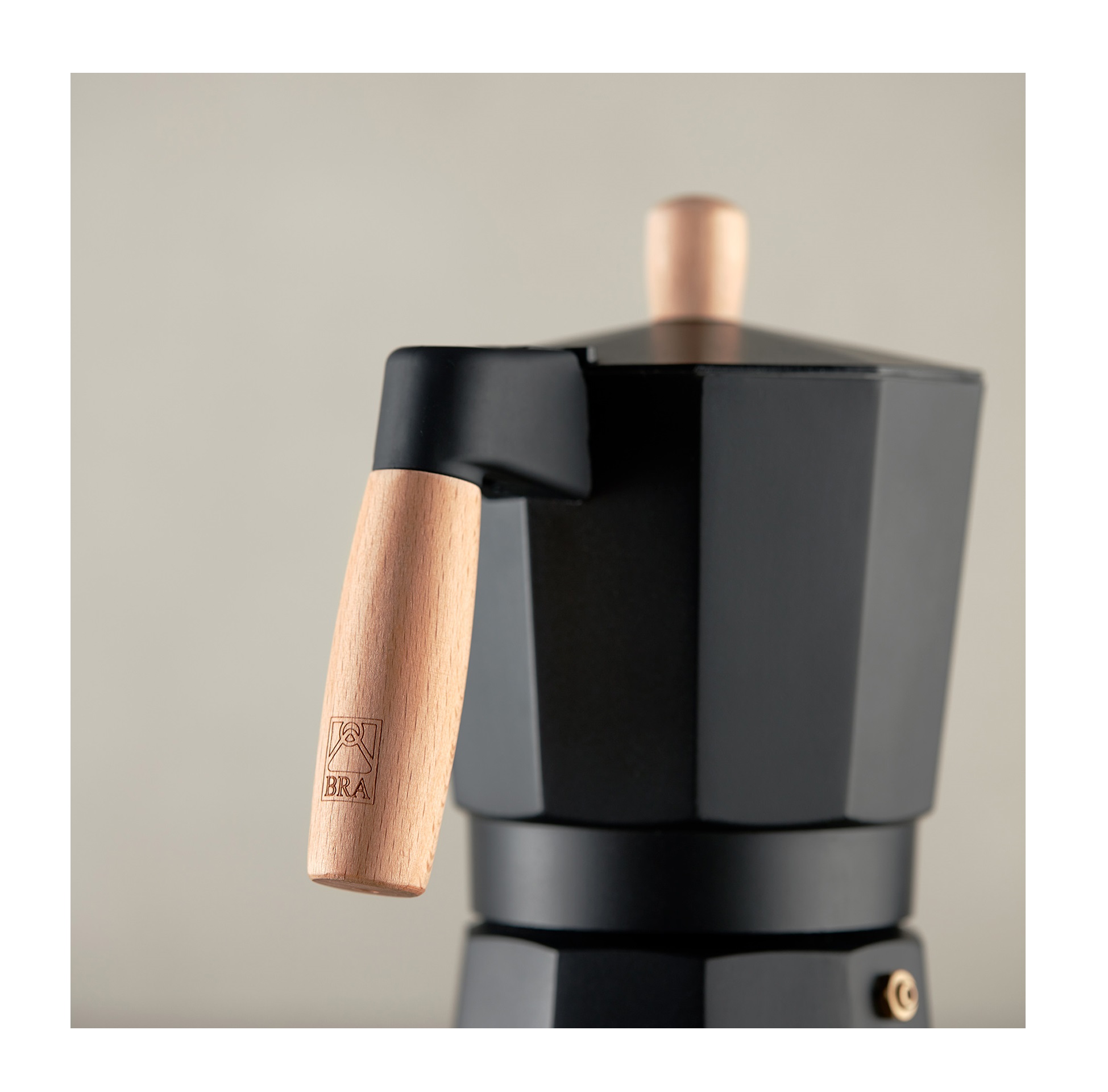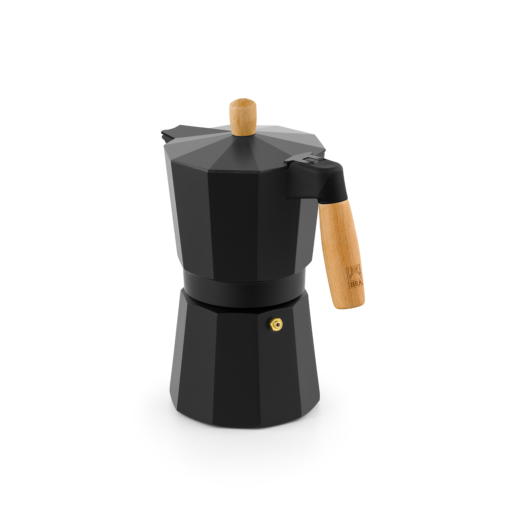 iva incl.La cafetera Bra Market con acabado en aluminio negro mate de la más alta calidad y su mango de madera natural de haya la convierten en una cafetera moderna y atemporal al mismo tiempo que dará a tu hogar un ambiente práctico y funcional.
