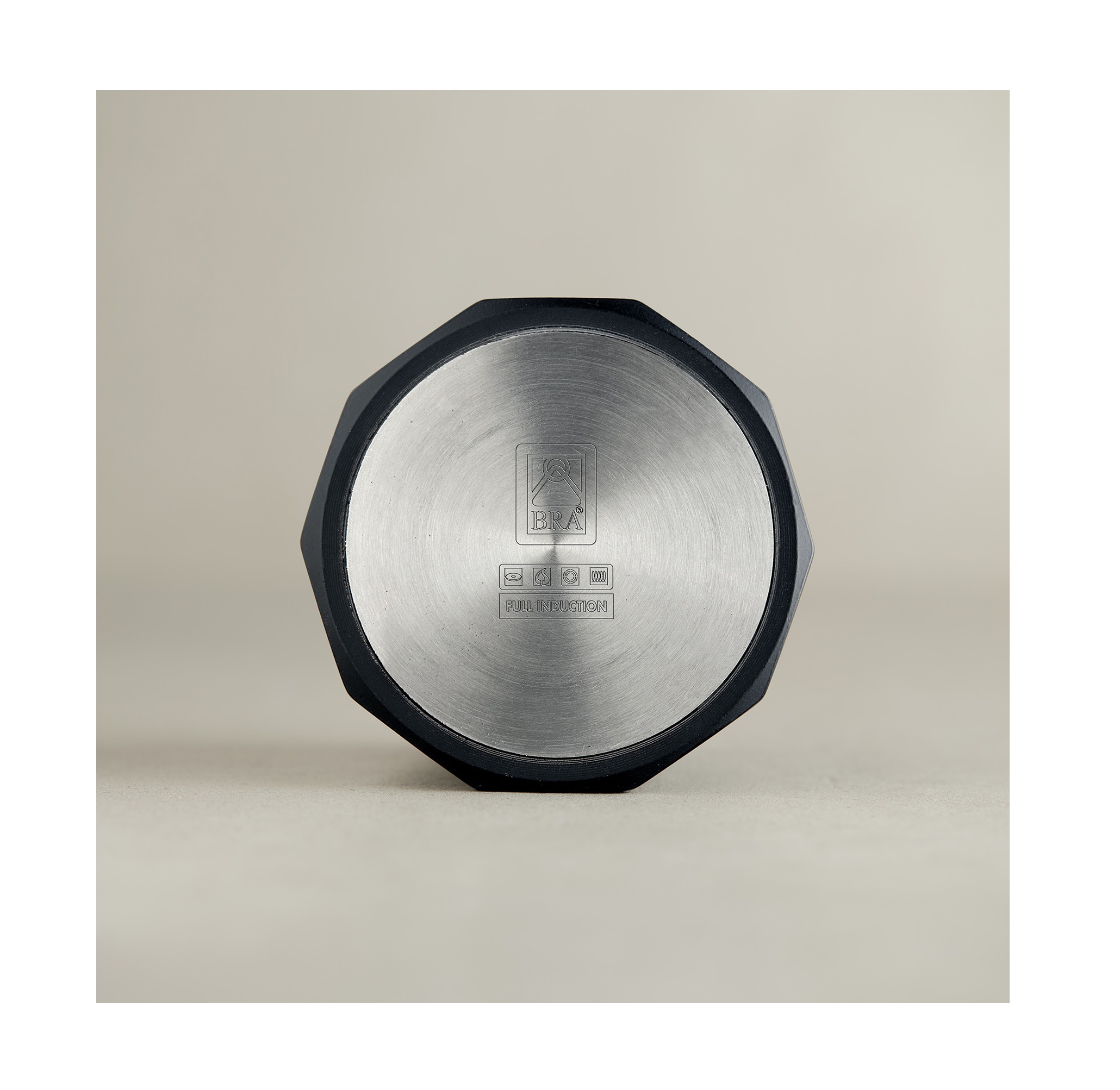 - Fondo difusor de acero inoxidable 18% de Cr. con sistema “Full Induction”. Válida para todo tipo de cocinas incluida la inducción.