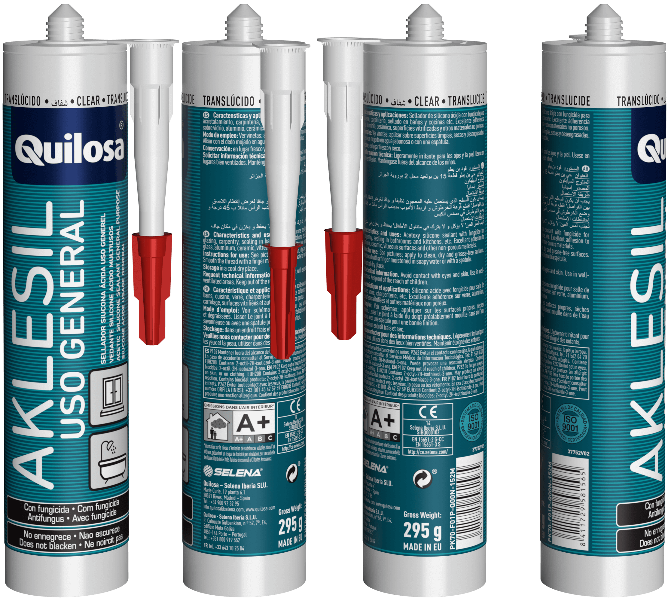 CAJA 24 UD AKLESIL USO GENERAL SILICONA ACIDA TRANSLUCIDO 280ML QUILOSA