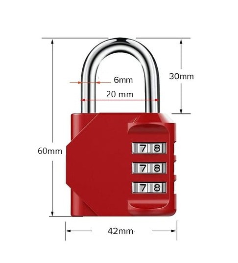 CANDADO COMBINACION 3 DIGITOS ROJO OJMAR, Img