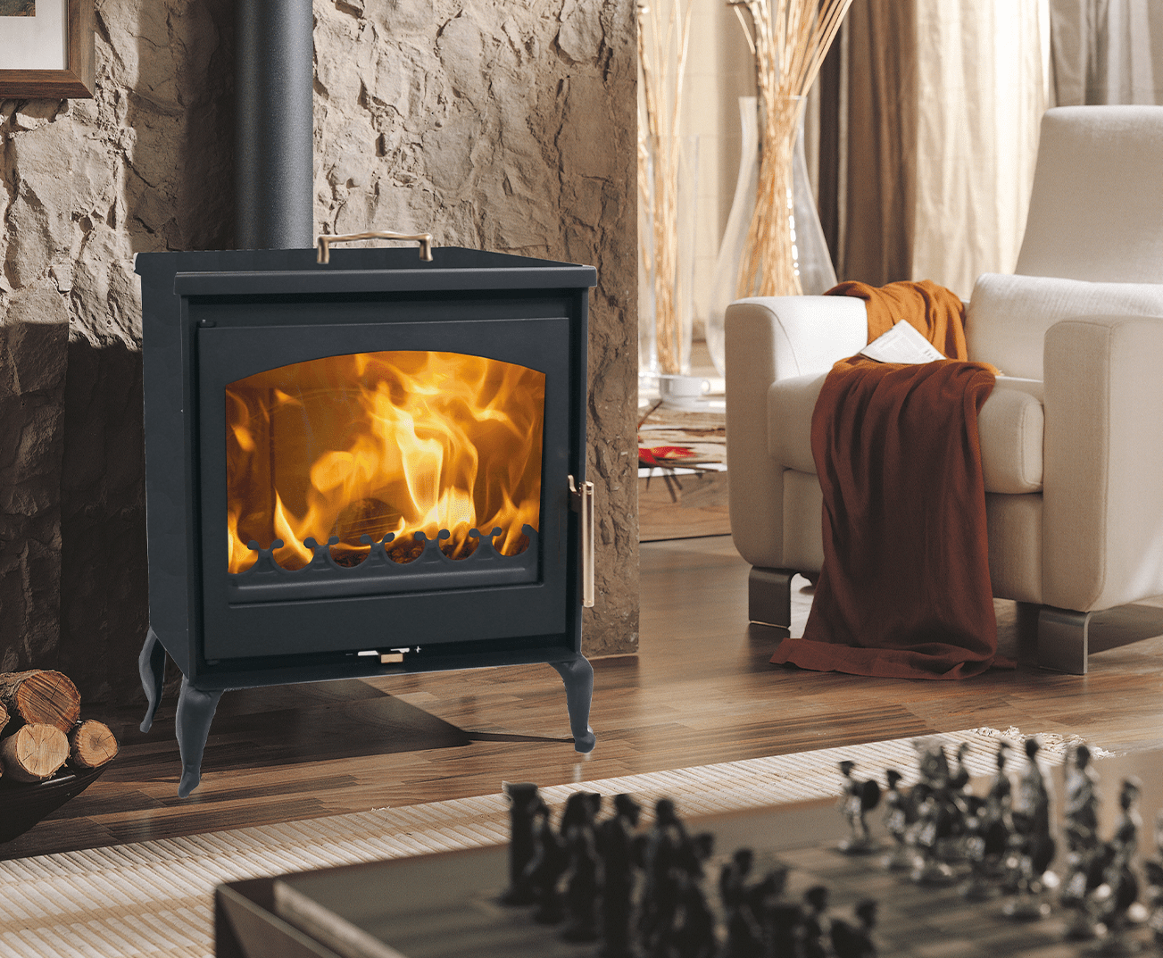 Estufa de leña de estilo clásico y conforme a la normativa Ecodesign.