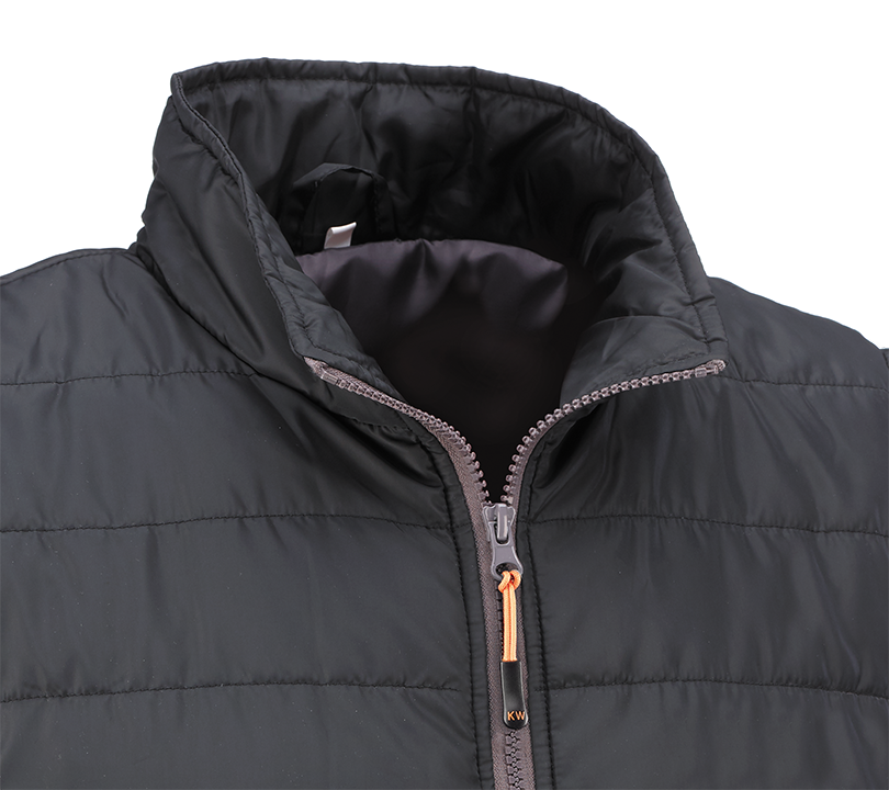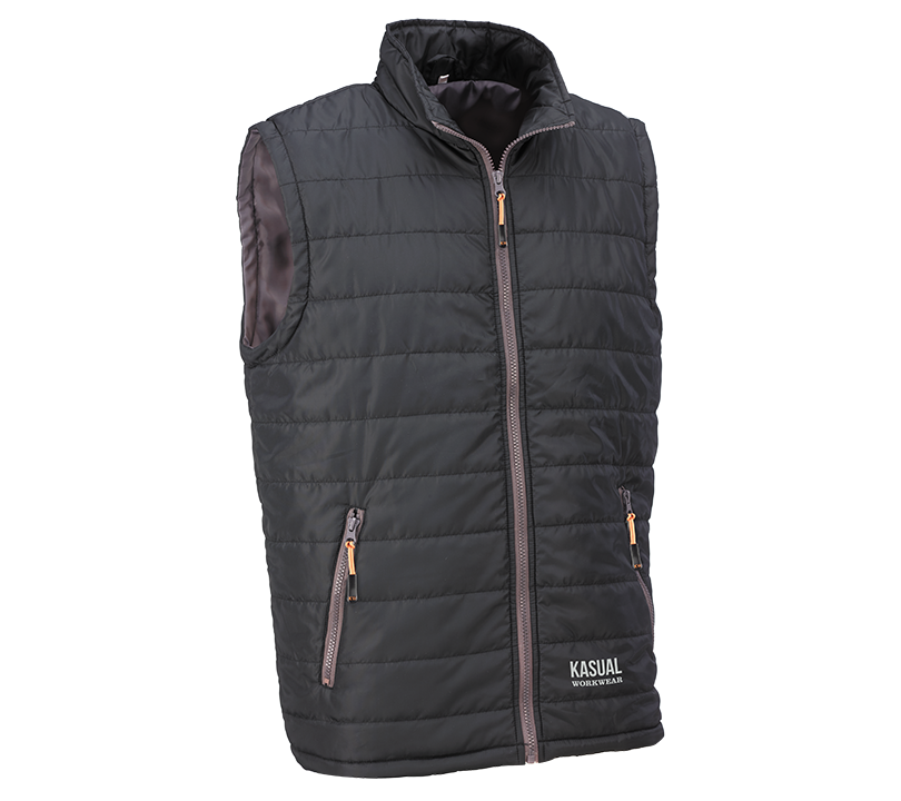 Chaleco acolchado con cierre frontal de cremallera. Dispone de dos bolsillos exteriores con cierre de cremallera.