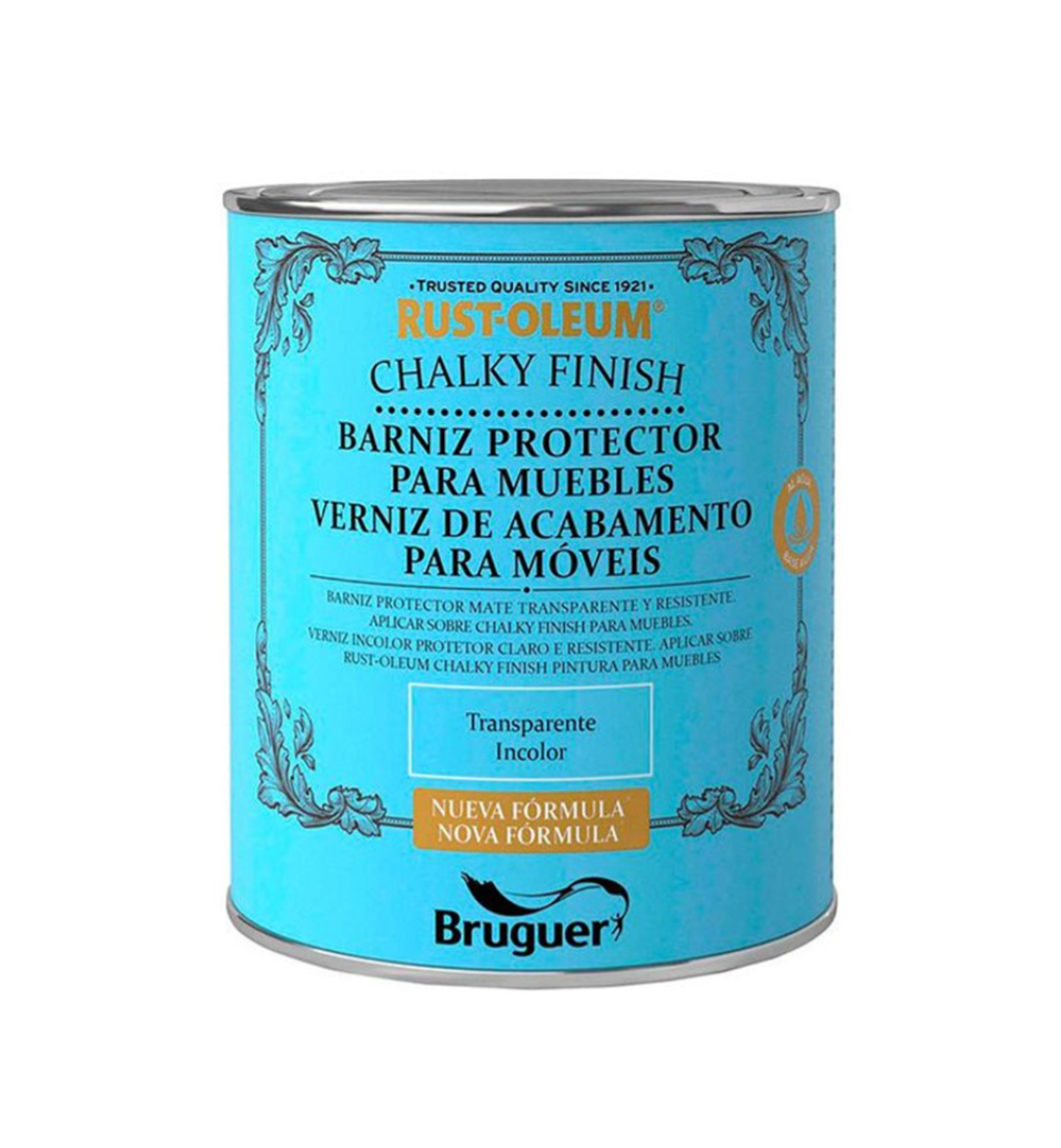 iva incl.Barniz protector para muebles Chalky Finish de Bruguer que ofrece una gran protección y sellado realzando la pintura de los muebles, también los protege contra golpes y rayadas.