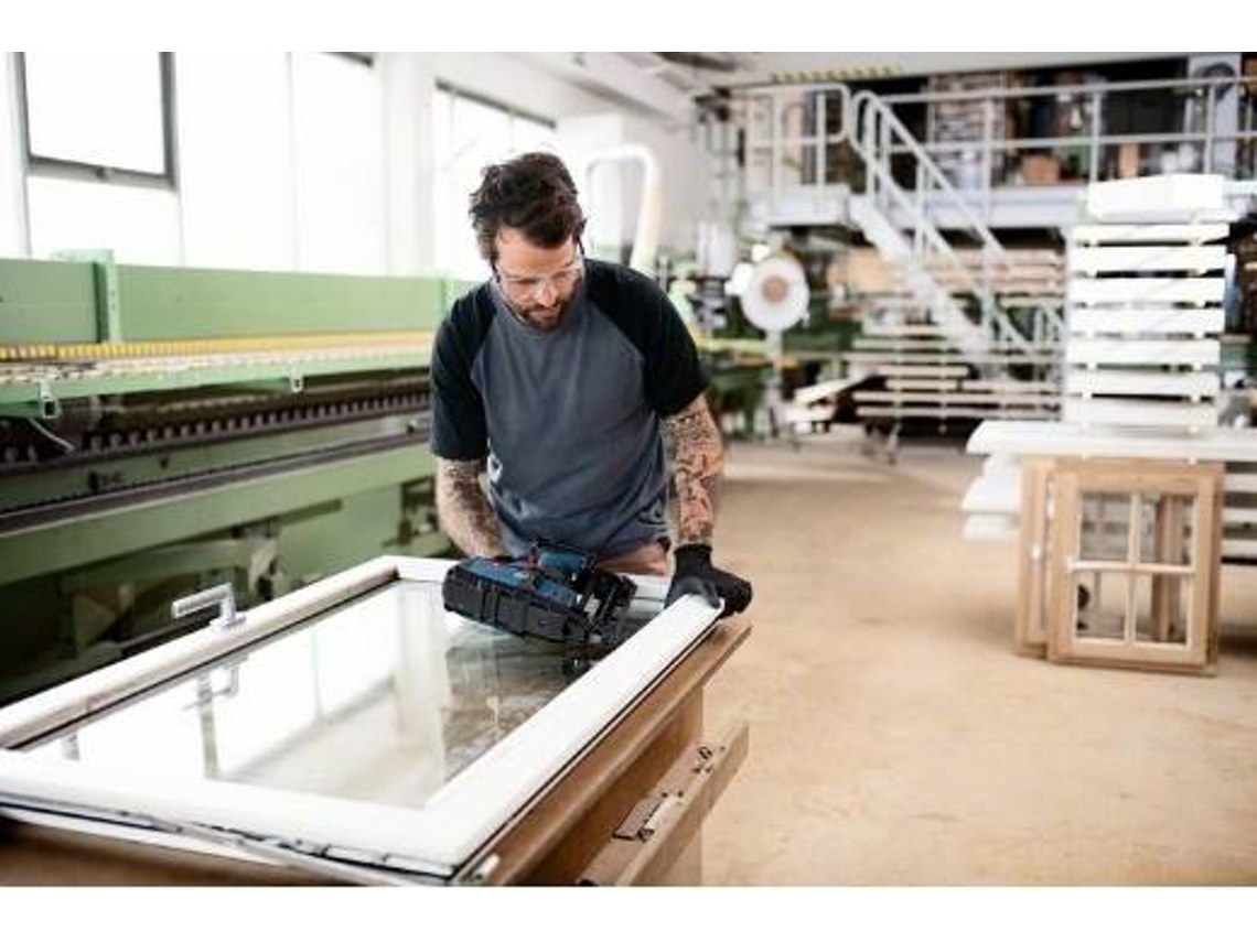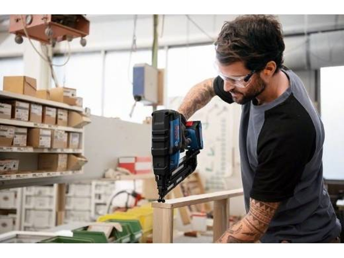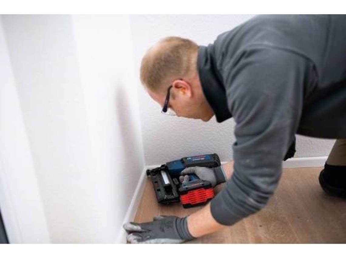 Es la mejor opción para trabajos de acabado en zócalos, marcos de puertas y ventanas, guardasillas y escaleras y molduras de madera blanda (pino), madera dura (roble, arce, abedul) y materiales de moldura compuestos. Es compatible con todas las baterías y cargadores Bosch Professional de 18 V (Professional 18V System). También compatible con AMPShare, la alianza de baterías multimarca.