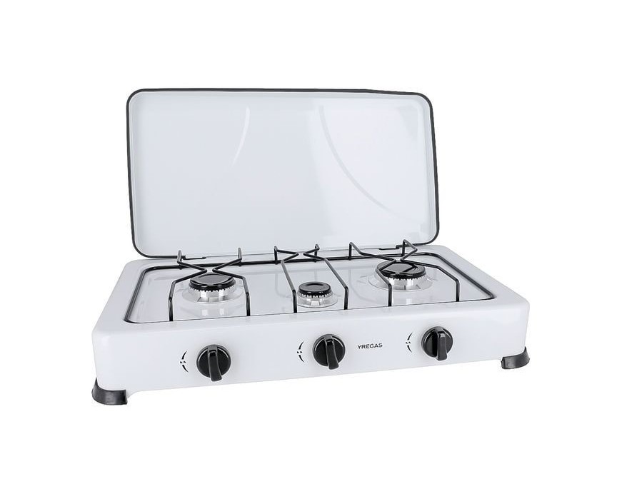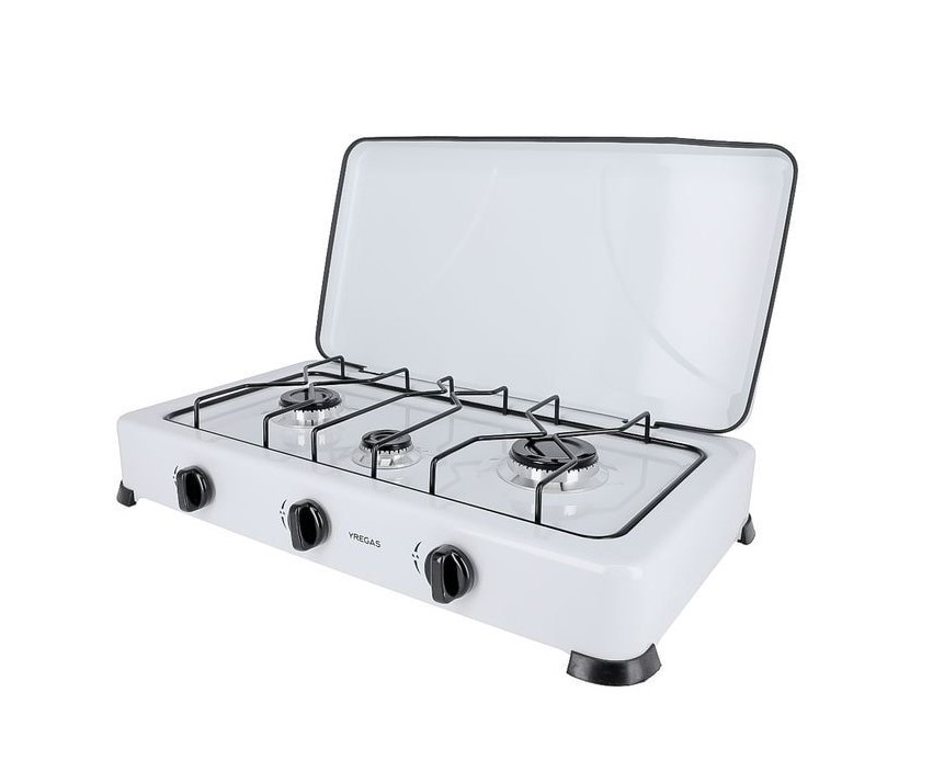 Cocina de gas esmaltada de 3 fuegos.