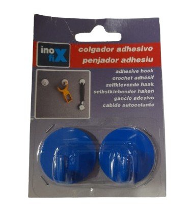 COLGADOR ADHESIVO AZUL REDONDO PACK 2 INOFIX