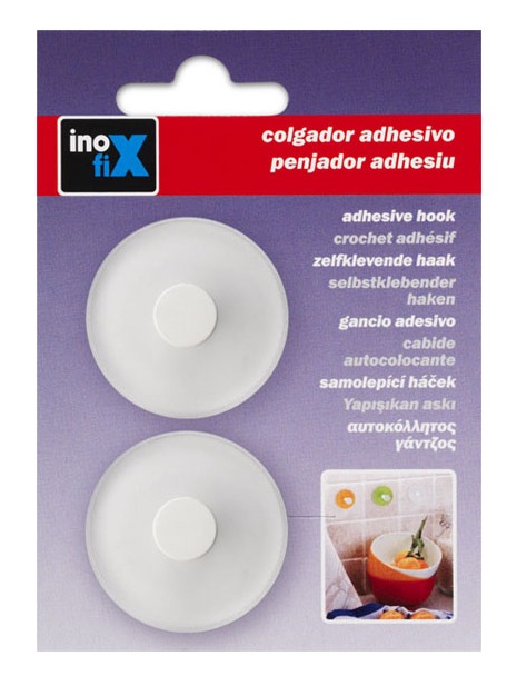COLGADOR ADHESIVO BLANCO REDONDO PACK 2 INOFIX