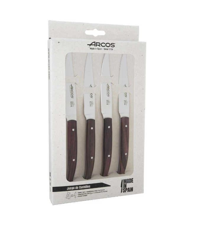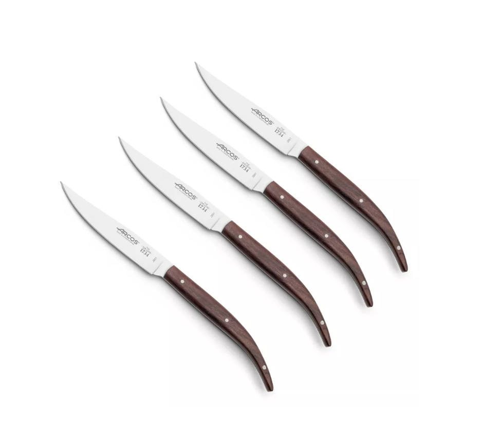CUCHILLO CHULETERO CON MANGO DE MADERA DE POLISANDRO JUEGO 4 PZAS. ARCOS