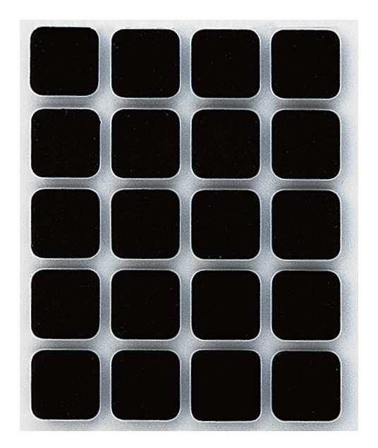 Placa con 20 antideslizantes cuadrados adhesivos de 3 x 17 x 17 mm. Espuma adhesiva antideslizante de máxima eficacia. Espuma antideslizante de 3mm de grosor. Adhesivo de gran resistencia. Material de larga durabilidad y alta resistencia al envejecimiento. Medidas: 3x17x17 mm.
