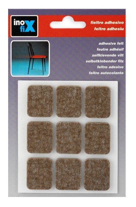 Fieltro de lana adhesivo troquelado en 9 piezas cuadradas de 3 x 29 x 23 mm.