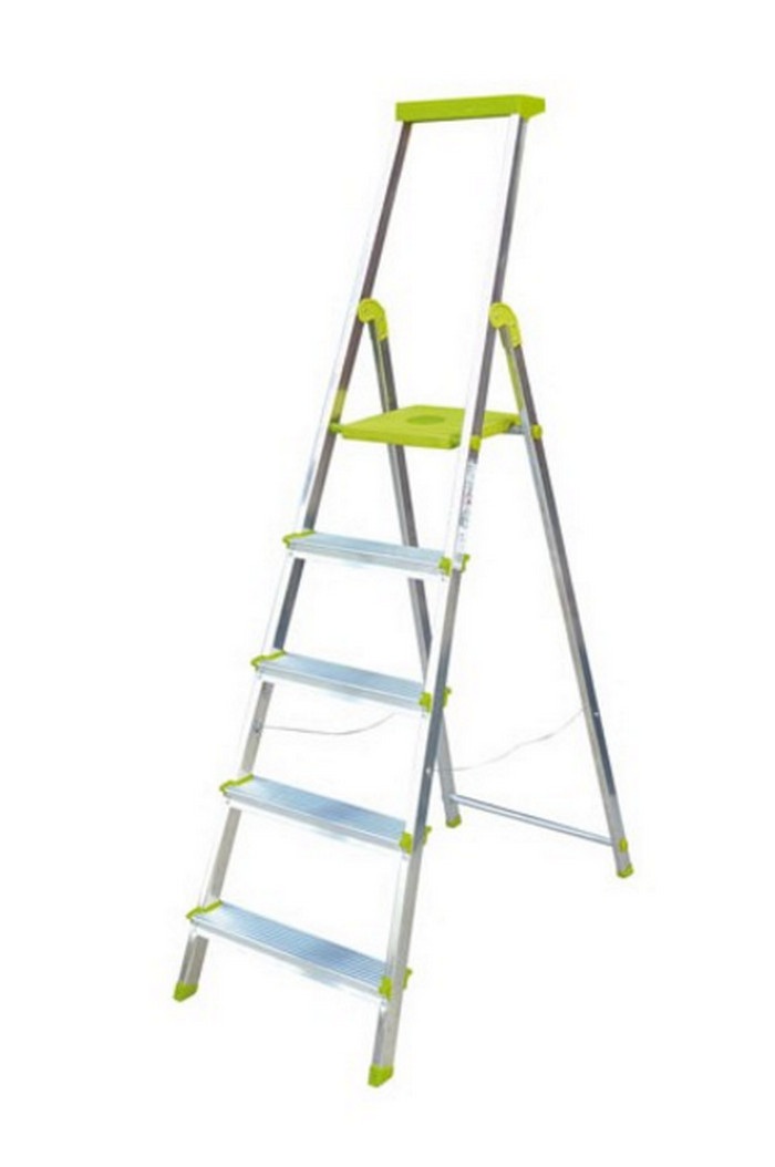 Escalera de aluminio, especial bricolaje, resistente y ligera de 4 peldaños. Autoestable de escalones y ascensión por un único lado.