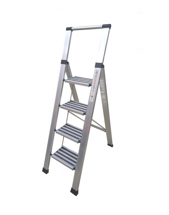 iva incl.Esta escalera doméstica de aluminio, fabricada en aluminio, de muy simple manejo, consta con una rigidez en sus materiales capaz de soportar hasta 150 kg de peso.