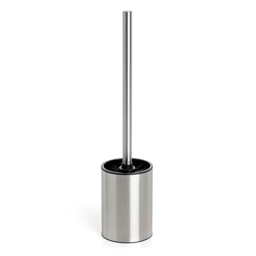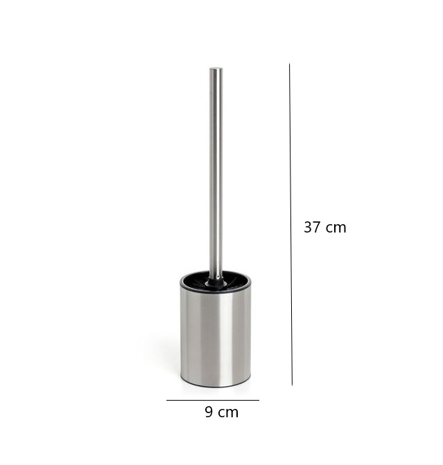 Escobilla wc de acero inoxidable. Acabado: satinado. Cubeta interior en polipropileno negro. Escobilla en polipropileno negro. Medidas: Diámetro 9 cm x 37 cm altura.