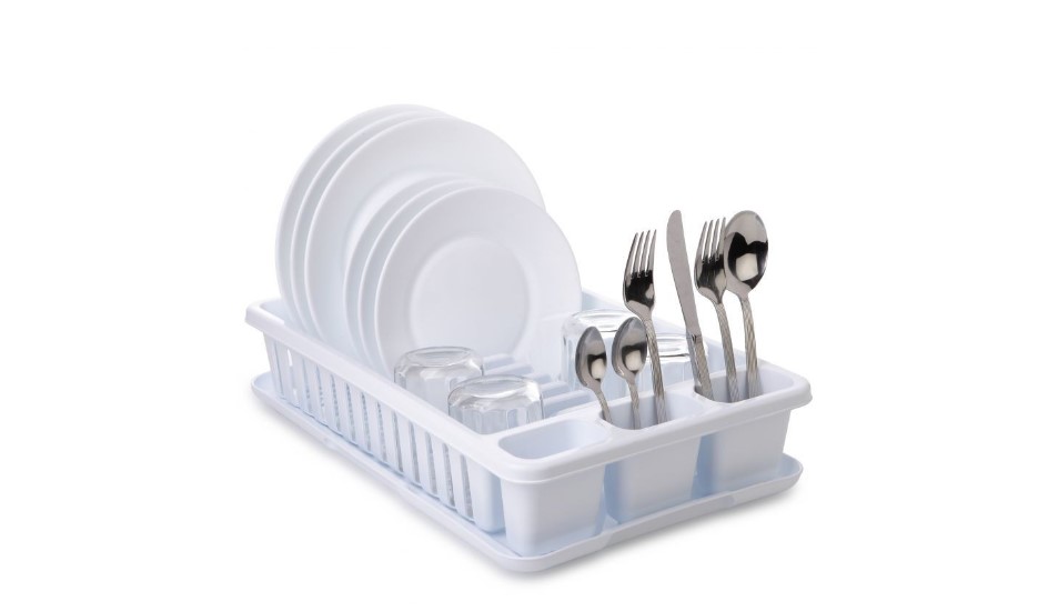 Escurreplatos sobremesa de cocina grande, con bandeja de plástico.