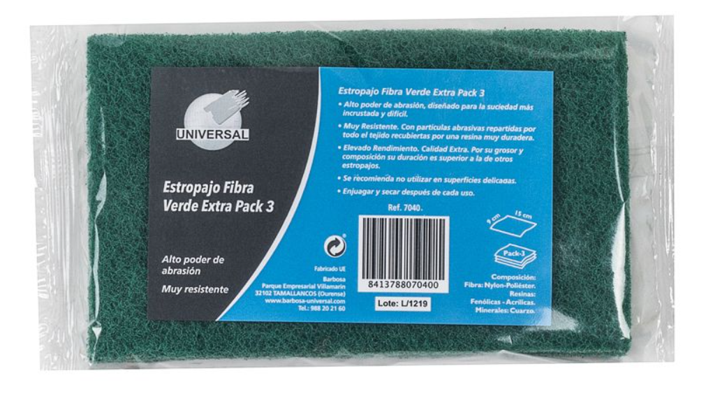ESTROPAJO FIBRA VERDE PACK 3UND BARBOSA