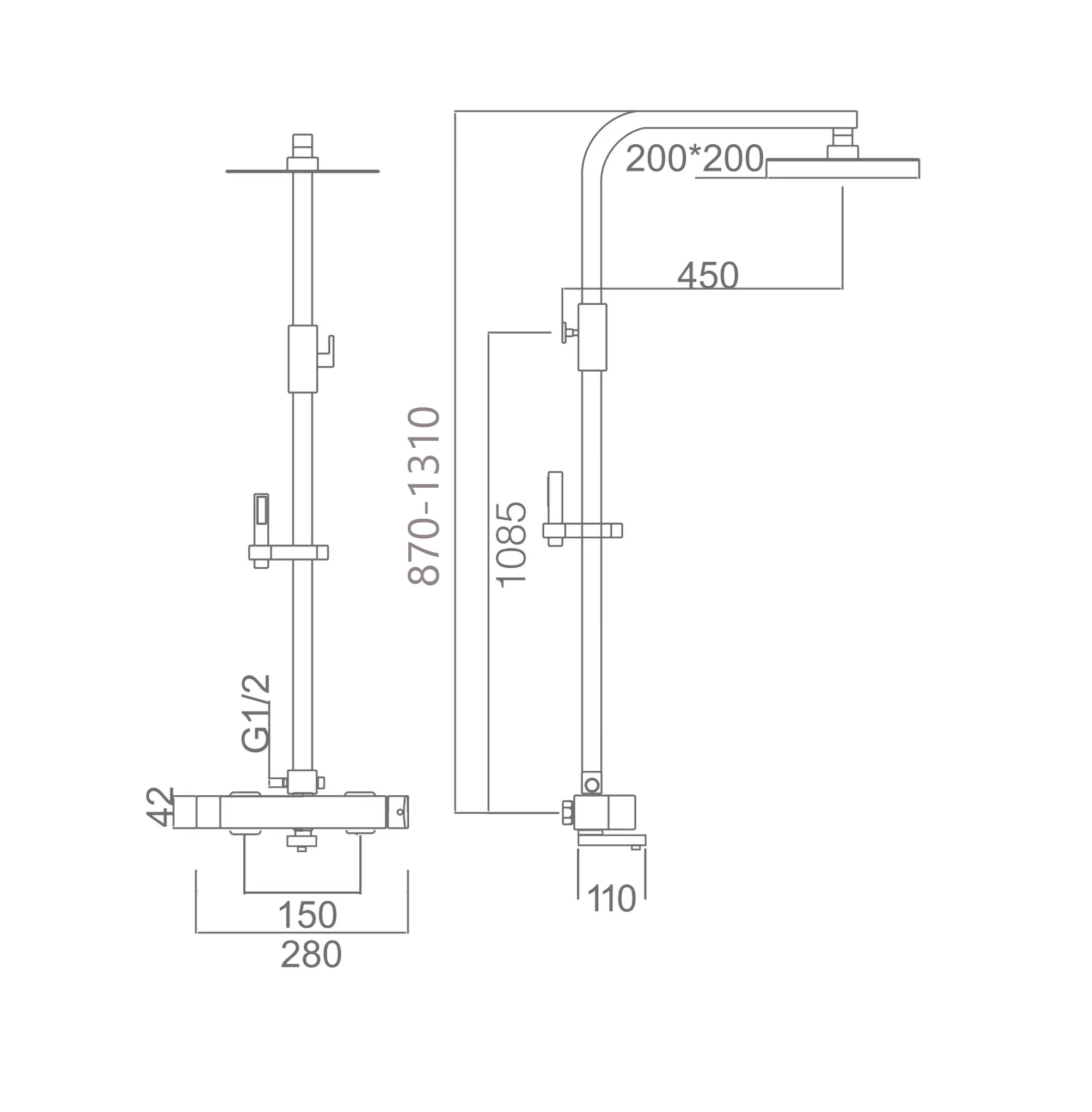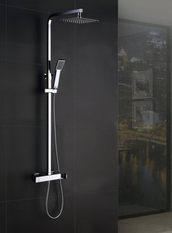 - Rociador de acero inox. cuadrado 20cm, extraplano, cromado y antical.