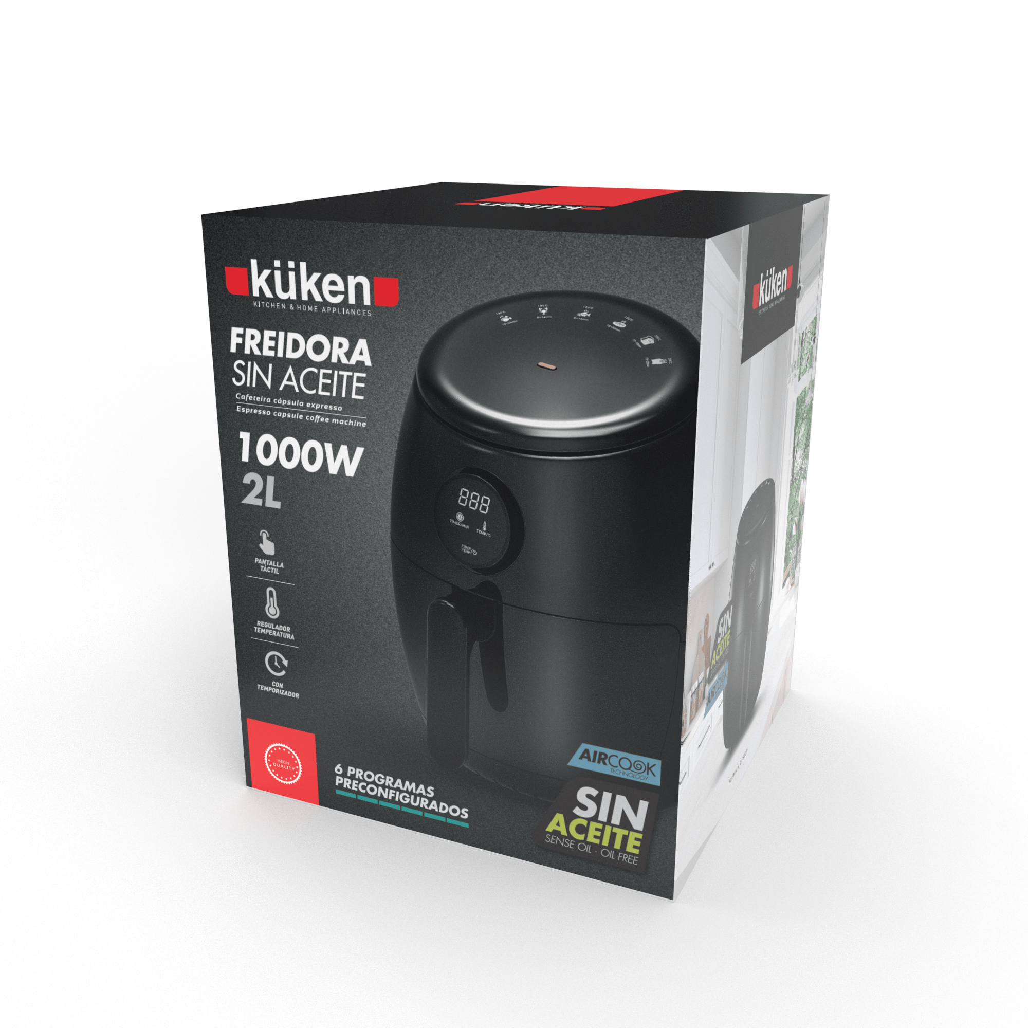 Freidora sin aceite KÜKEN con tecnología por convección de aire caliente a alta velocidad que permite cocinar los alimentos sin grasas añadidas, conservando todo su sabor y nutrientes.