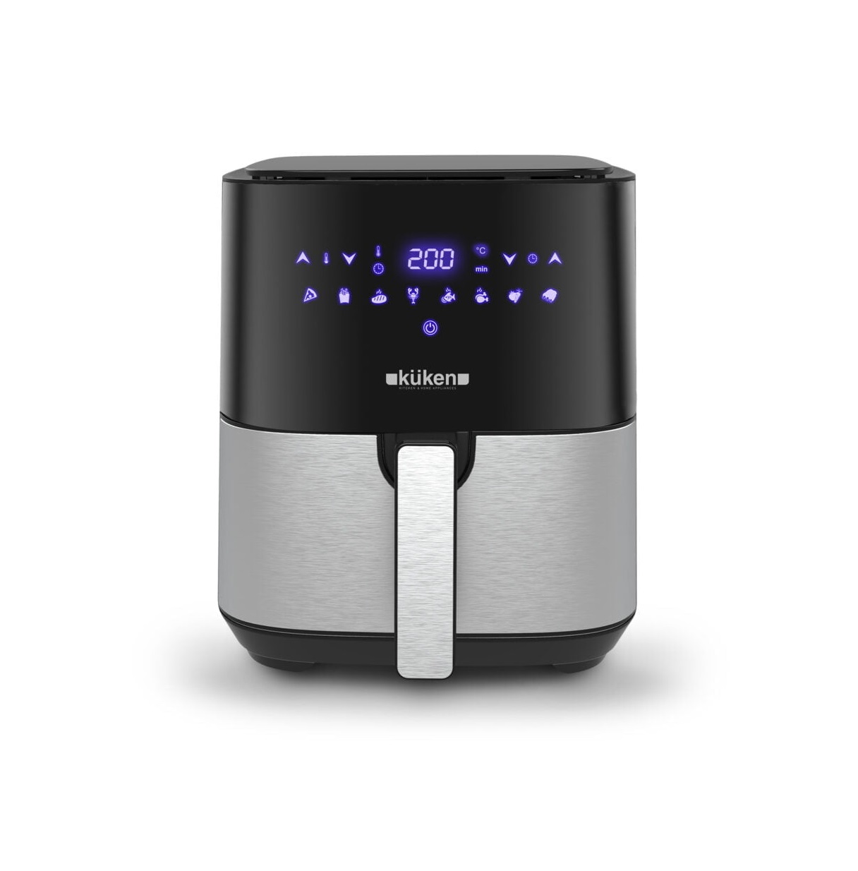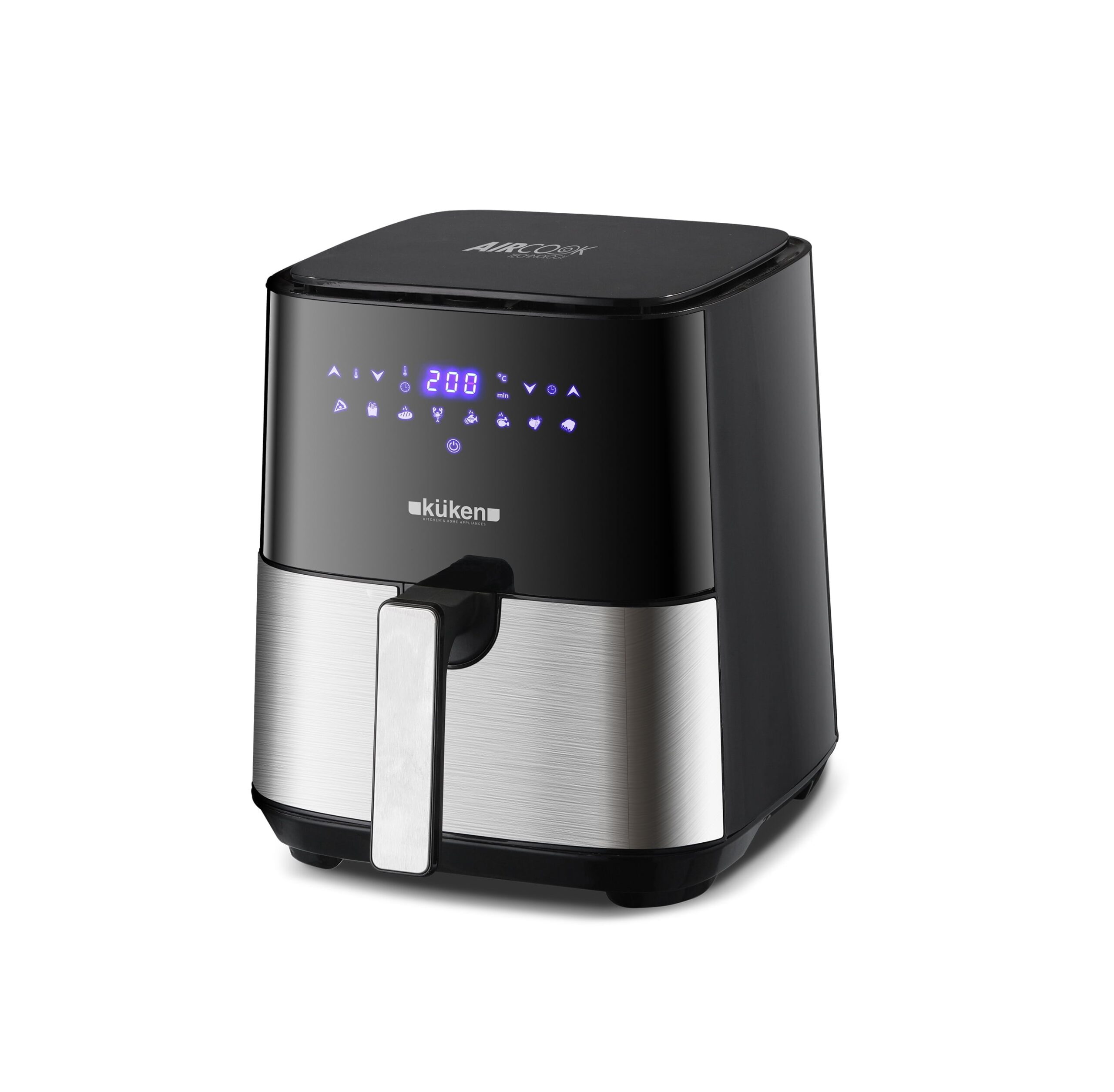 Freidora sin aceite digital KÜKEN con tecnología por convección de aire caliente a alta velocidad que permite cocinar los alimentos sin grasas añadidas, conservando todo su sabor y nutrientes.