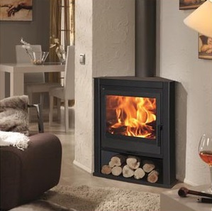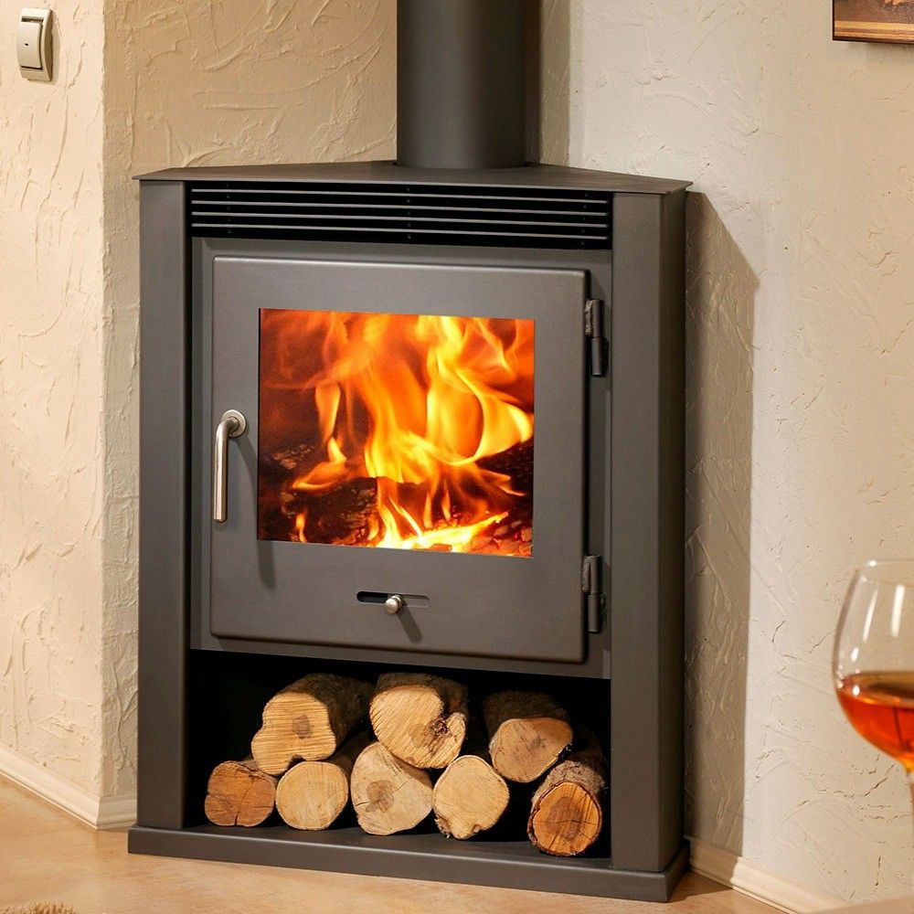Esta estufa de leña es de fácil utilización y tiene leñero.