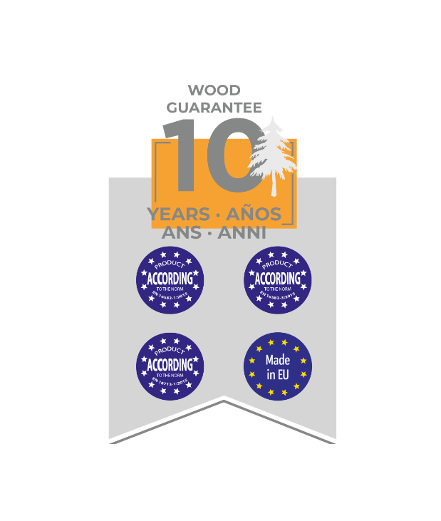 - Estructura de pino silvestre francés y autoclave clase IV. Certificado PEFC