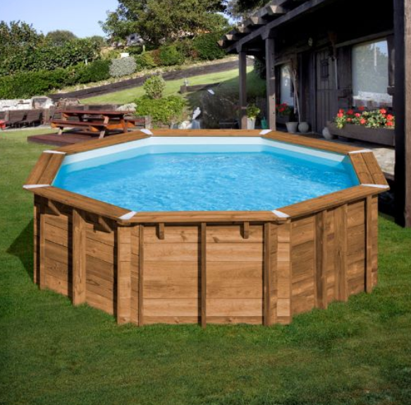 - Piscina de madera octagonal fabricada en Francia en pino silvestre Francés