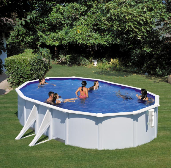 - Piscina ovalada de pared de acero blanco