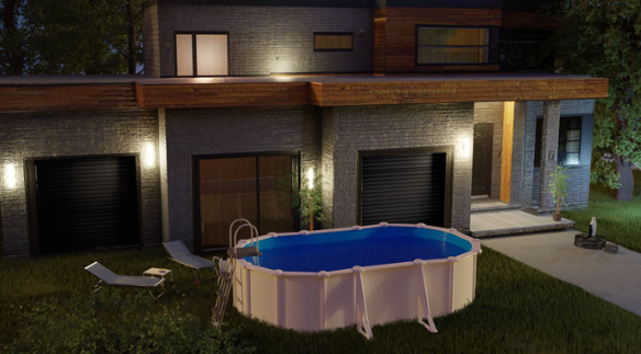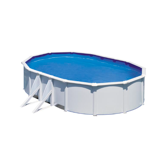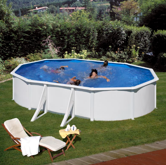 - Piscina ovalada de pared de acero con chapa blanca