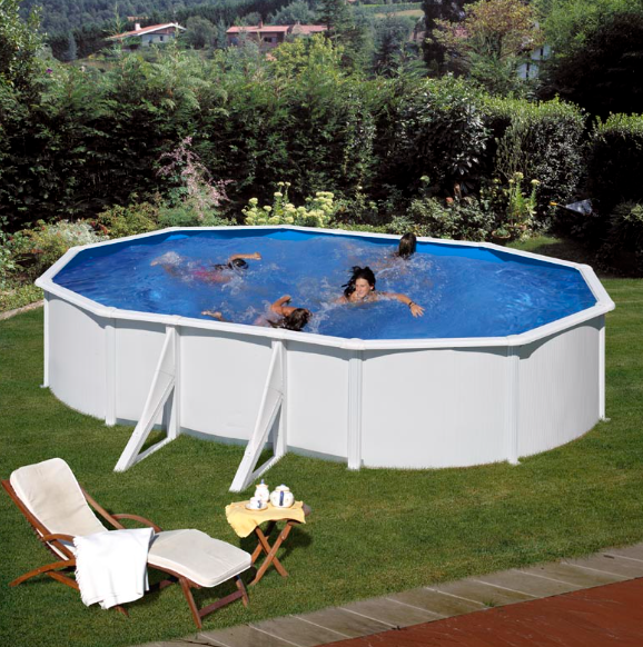 - Piscina ovalada de pared de acero con chapa blanca