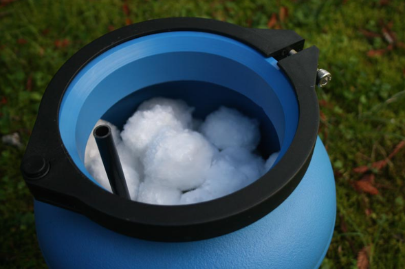 - Bolas de polietileno que filtran los residuos