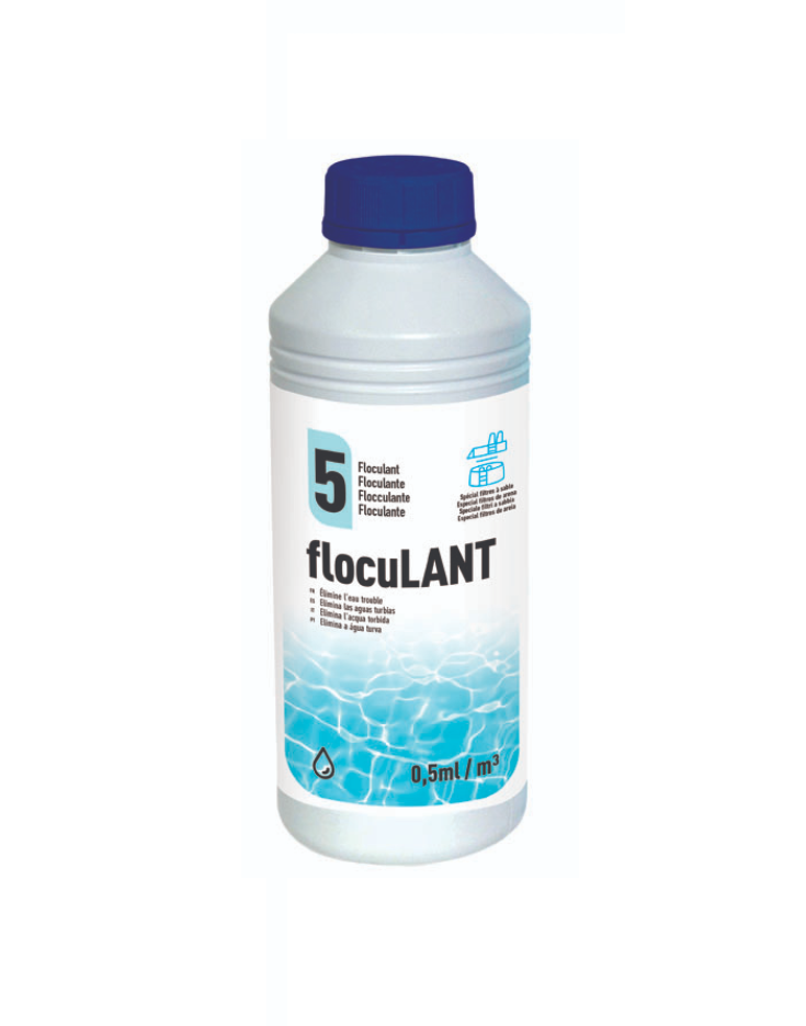 - Mantenimiento: Añadir 5ml de Floculante líquido por cada 10 m³ de agua