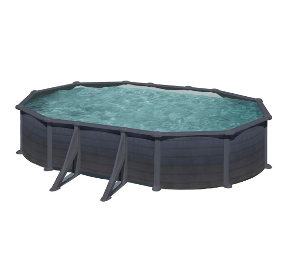 - Piscina ovalada de pared de acero con decoración de grafito