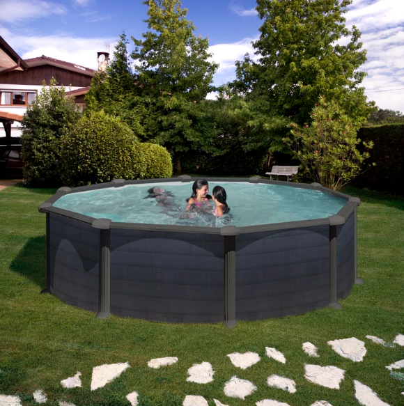- Piscina redonda de pared de acero con decoración de grafito