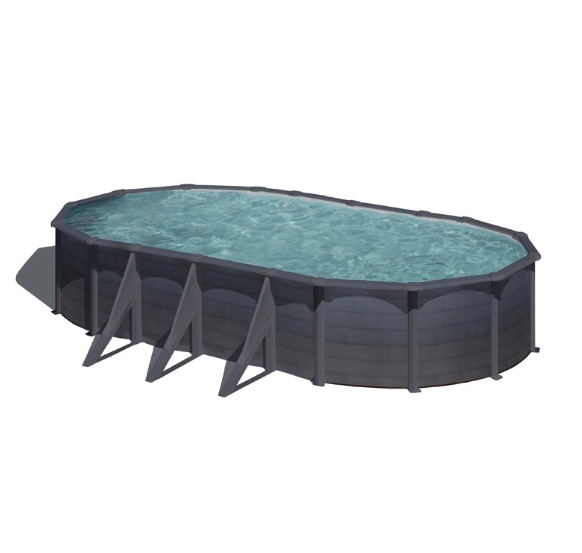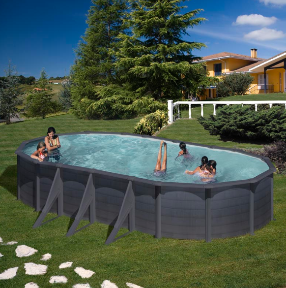 - Piscina desmontable ovalada de pared de acero con decoración de grafito