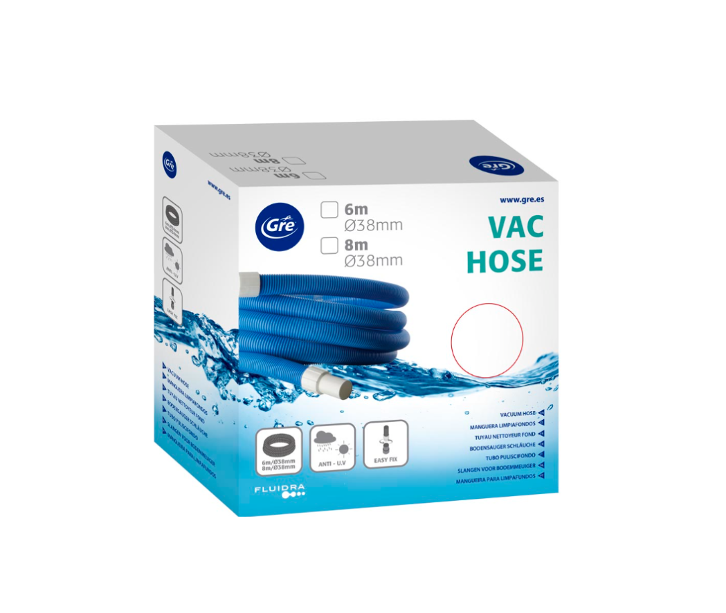 GRE MANGUERA PARA LIMPIAFONDOS 6M 2 TERMINALES Ø38MM AR210