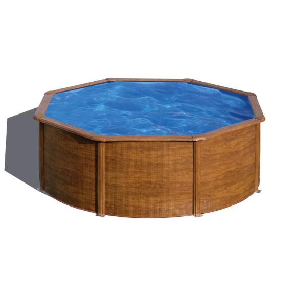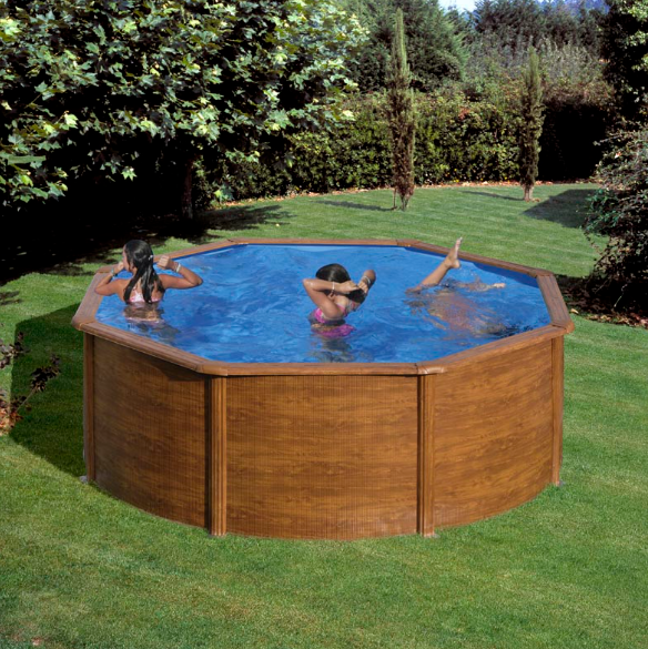 Las piscinas elevadas de acero con aspecto de madera Sicilia le permitirán maximizar el espacio en el jardín para disfrutar de momentos en familia o entre amigos. Estas piscinas se instalan fácilmente sin necesidad de realizar obras gracias a los postes laterales que refuerzan la estructura de la piscina. Las piscinas de la gama Sicilia se entregan con todos los componentes necesarios para el montaje fácil de la piscina: pared de acero decoración de madera, filtración de cartucho, liner y escalera.